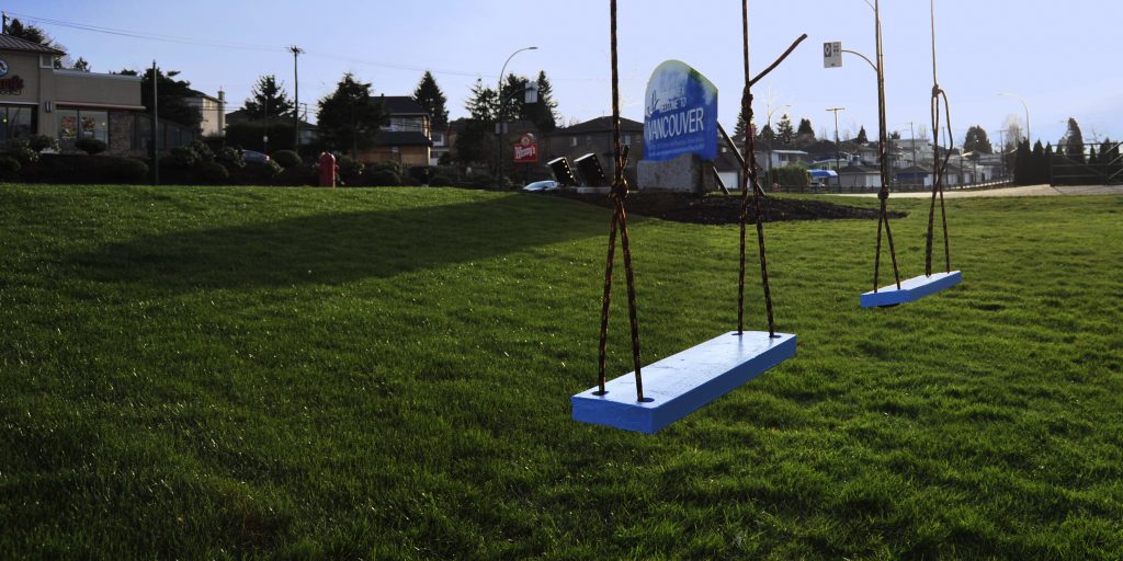 For a number of years I installed swing sets from billboards (the trash that capitalism leaves behind).